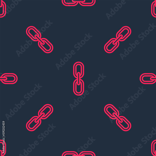 Fototapeta premium Red line Chain link icon isolated seamless pattern on black background. Link...