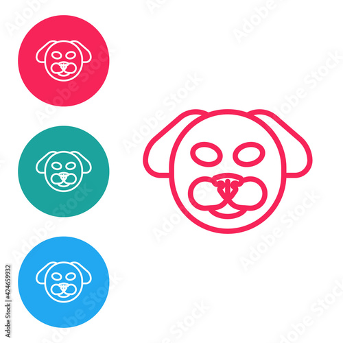 Naklejka premium Red line Dog icon isolated on white background. Set icons in circle buttons....