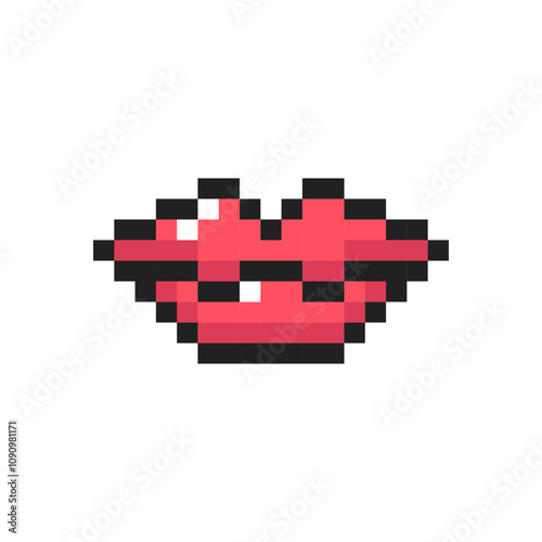 © Mariia, Fototapeta premium Red lips 8-bit icon, lips pixel art item.