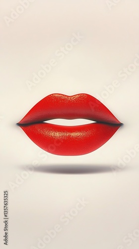 © Miki, Obraz premium Red Lips for Minimalist Beauty, White Background.