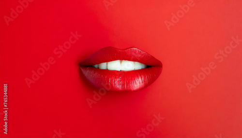 © Delly, Obraz premium Red lips Kiss, space to write red background