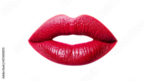 Obraz premium Red lips with lipstick beauty makeup, isolated, cut out transparent