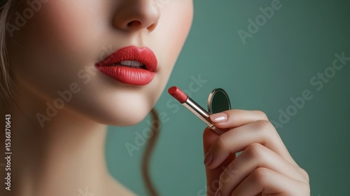 © pemanah rasa, Obraz premium Red Lipstick Application Beauty Makeup Woman Glamour Elegance