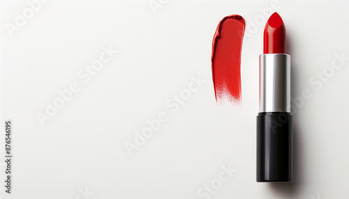 Obraz premium Red lipstick with a swatch of color on a white background elegant and classic...