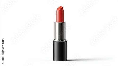 © JSR, Obraz premium Red Lipstick with Black and Silver Tube on White Background