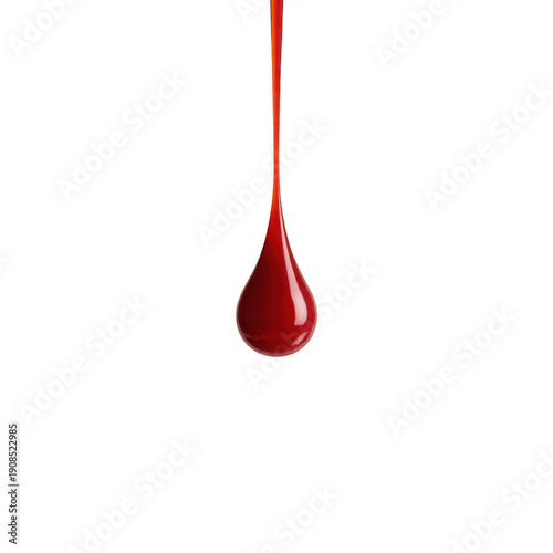 © abba, Obraz premium Red liquid drop falling isolated on a transparent background