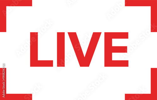 Fototapeta premium Red LIVE text with red corner brackets on white background live word