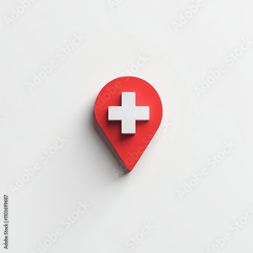 © lestari, Obraz premium Red location marker with white plus sign.