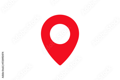 © Kss, Fototapeta premium Red Location Pin Icon Vector – Minimal Map Marker Symbol for Navigation, GPS, Travel, Direction, and Geolocation Design on White Background