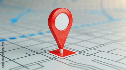 Fototapeta premium Red location pin on a grid map, high-resolution photo, pop art style, vibrant colors, bold outlines, dynamic composition, modern navigation icon