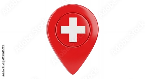 © Office, Obraz premium Red Map Pointer with White Cross Icon Medical Location Marker 3D Render