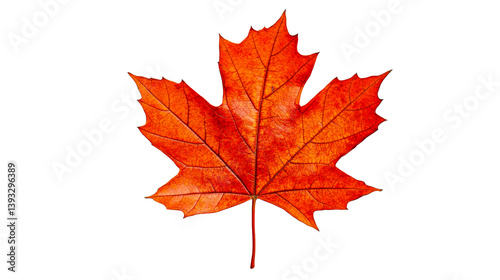 © Maestro, Fototapeta premium Red maple leaf close up veins detail vibrant color, cut out transparent