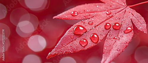 © zipop, Fototapeta premium Red Maple Leaf Glistening With Dew Drops