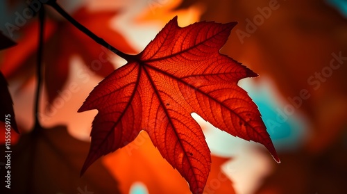 © Pinky Soni, Obraz premium red maple leaf in the forest