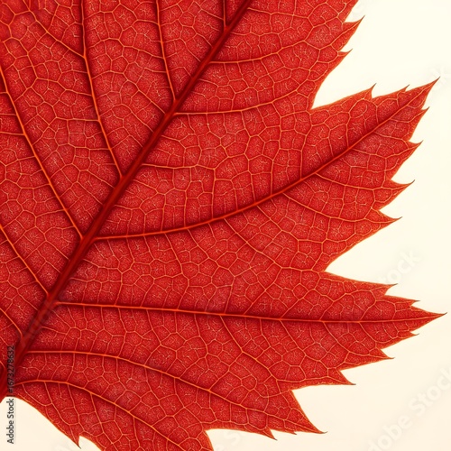 Obraz premium Red maple leaf microscopic close-up view