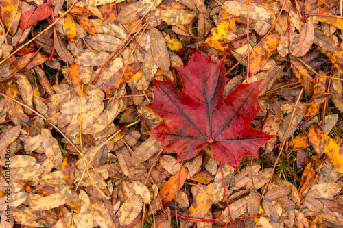 Obraz premium Red maple leaf on the ground