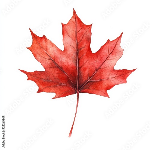 Fototapeta premium Red Maple Leaf Watercolor Illustration.