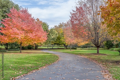 © Anar, Fototapeta premium Red Maple Trees in Autumn with Fallen Leaves and Vibrant Foliage. AI generated illustration