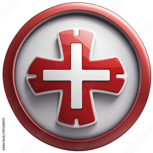 © ainun, Obraz premium red medical cross icon in circle, 3d
