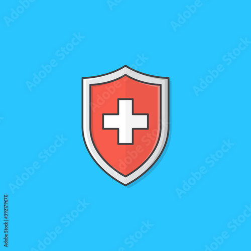 © Fernandiputra, Obraz premium Red Medical Shield Protection Vector Icon Illustration. Immune System Concept Flat Icon