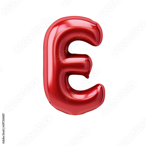 © premyuda, Fototapeta premium Red metallic E alphabet balloon Realistic 3D on white background. Generative AI