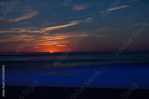 © terryd210, Naklejka premium Red Moonrise above the sea at twlight