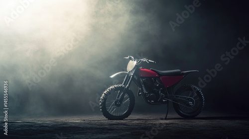 Fototapeta premium Red Motocross Bike in Dramatic Smoky Setting