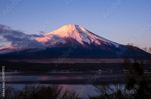 Fototapeta premium Red Mt Fuji during sunrise from Lake Yamanaka, Japan
