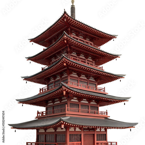 Naklejka premium Red multi tiered pagoda tower ornate roof design image