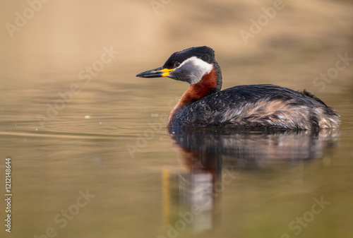 © Simonas, Fototapeta premium Red-necked grebe at the small lake in spring
