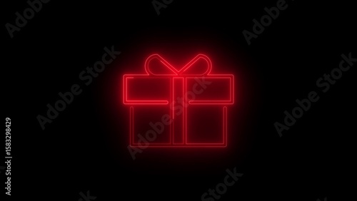 Obraz premium Red Neon Gift Box Silhouette on Black Background present