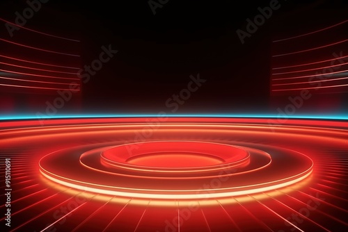 Obraz premium Red neon glowing platform, dark background.