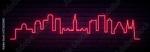 © greens87, Fototapeta premium Red neon skyline of Ottawa. Bright Ottawa City long banner. Vector illustration.