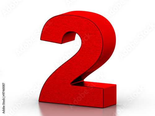 © kconcepts, Fototapeta premium Red number 2 on white reflective background
