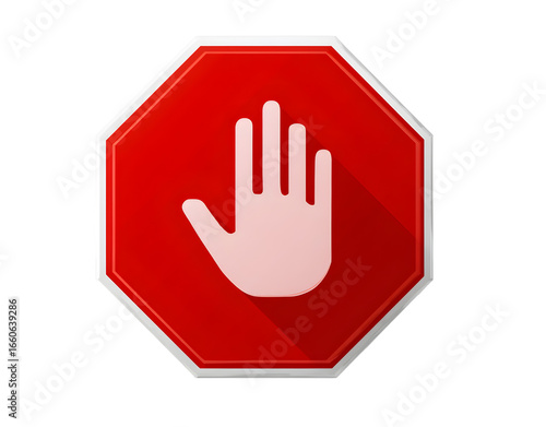 © PNG AI, Obraz premium Red Octagonal Stop Sign with White Hand Vector Illustration