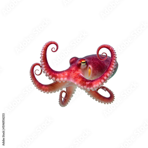 © chalindu, Fototapeta premium Red octopus animal isolated on white background for marine life, underwater, ocean themes or decor