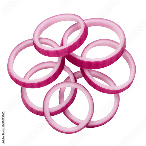 © 3D, Obraz premium Red onion rings isolated on white background for fresh vegetable ingredient and healthy food recipe concepts