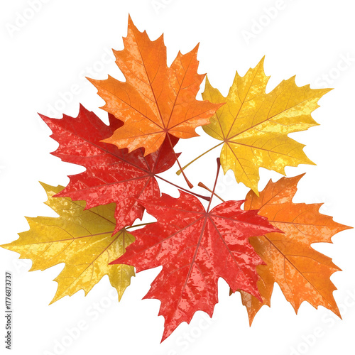 Obraz premium Red Orange and Yellow Maple Leaves, Autumn Fall Foliage Isolated Illustration