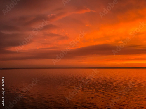 © Oksana, Fototapeta premium Red orange fire sunset at the sea