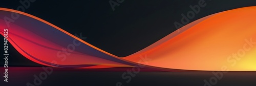 © rajagambar99, Fototapeta premium red, orange gradient, curved shape, black background, 3d render, simple shapes, in the style of simple, minimal, green light aspect ratio 3:1, for banner, landing page, website