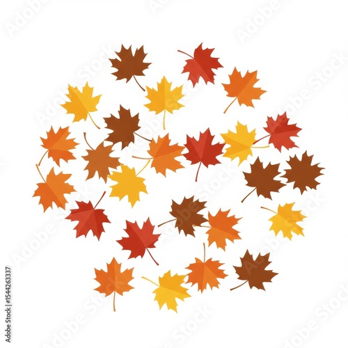 © Meloncholy, Fototapeta premium Red Orange Yellow Brown Maple Leaves on White Background