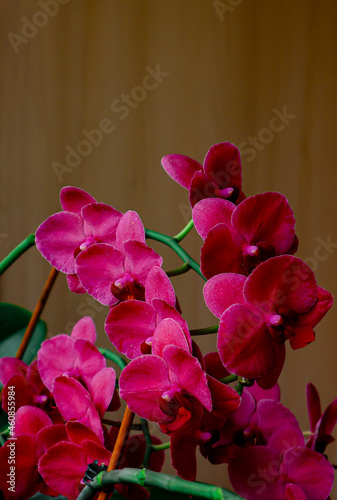 © Виктор Попов, Fototapeta premium Red orchid close-up on a brown background.
