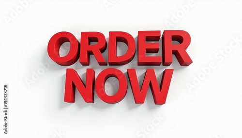 Fototapeta premium Red 'Order Now' text on a white background, urging immediate action.