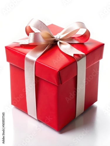 © Pitipat, Obraz premium Red package with label on a plain white background