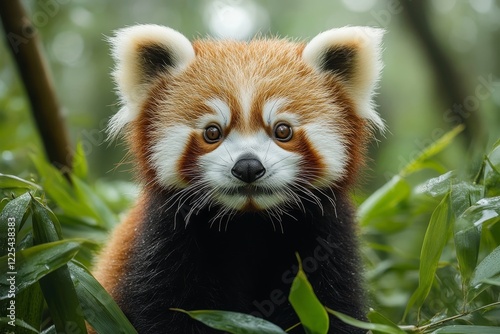 © Aurora Blaze, Naklejka premium Red panda cub exploring a dense forest in its natural habitat