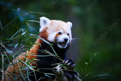 © Jim Barris, Naklejka premium red panda eating bamboo