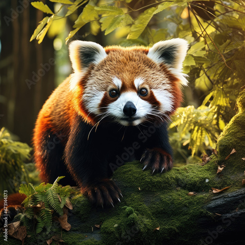 Fototapeta premium Red Panda in Natural Habitat Close-up Portrait