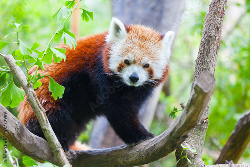 © Shchipkova Elena, Fototapeta premium red panda lies on a tree branch