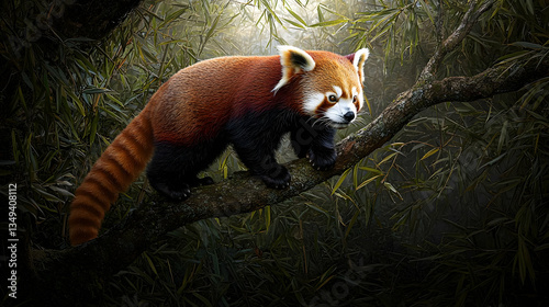 © julio, Naklejka premium Red Panda On Branch In Forest Scene