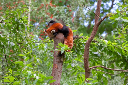 © martinlisner, Obraz premium Red Panda sitting alone in a tree